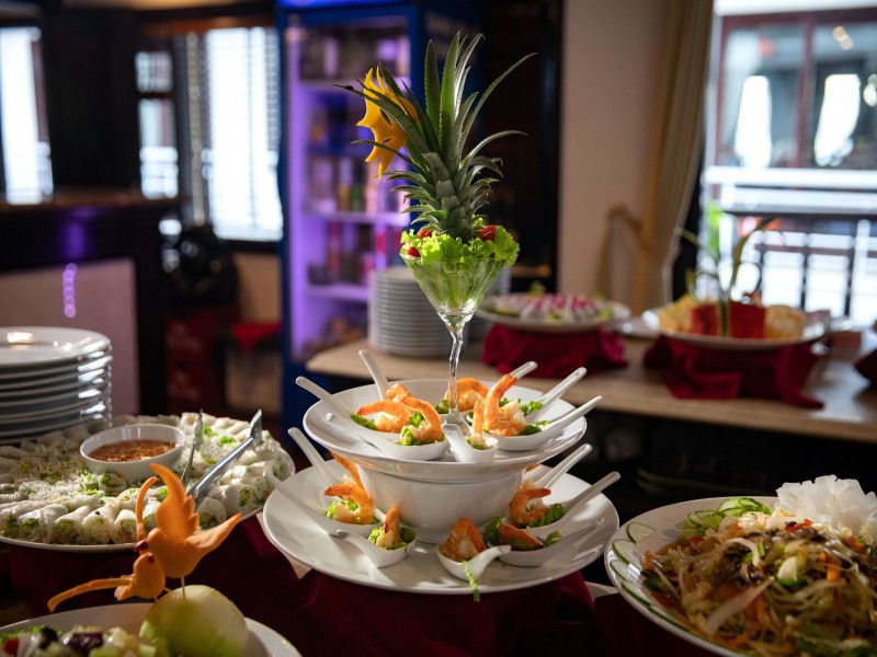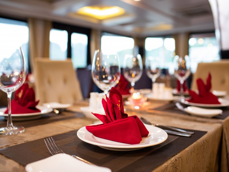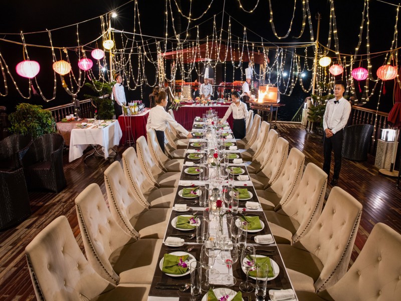 19:30 Under the magnificent night sky, in the magic atmosphere in Ha long Bay, Our luxury set-menu dinner is served with a variety of Vietnamese and Asian foods.