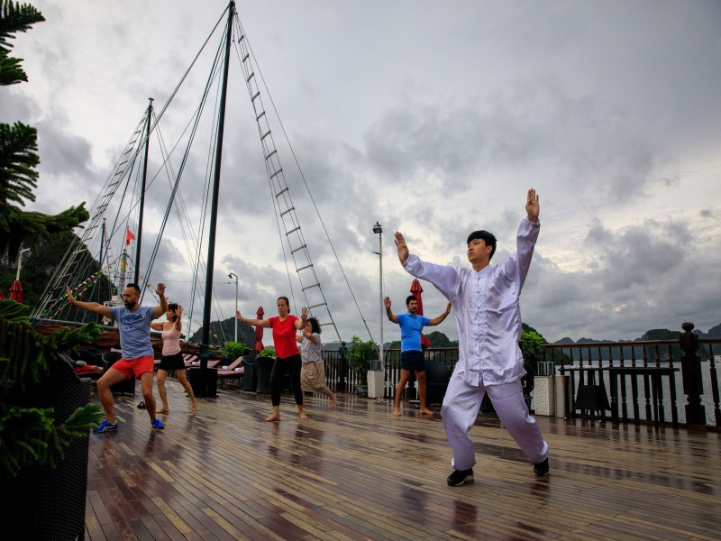 06.30-7:00 Early morning sun risers can enjoy Tai Chi Le session on the sundeck. Tai chi also called Tai chi chuan, combines deep breathing and relaxation with slow and gentle movements. Coffee, tea, and pastries for light breakfast are served in the dining room with the morning view of bay’s landscape.