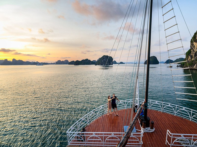 16.00 Visiting the beautiful Ti Top beach for swimming (if the weather permits), Ti Top Beach is especially famous for its fresh atmosphere, clean water, and smooth white sand that create a great ambiance for tourists to relax or passengers can take steps to reach the top of Ti Top beach to have a whole panorama view of Halong Bay.