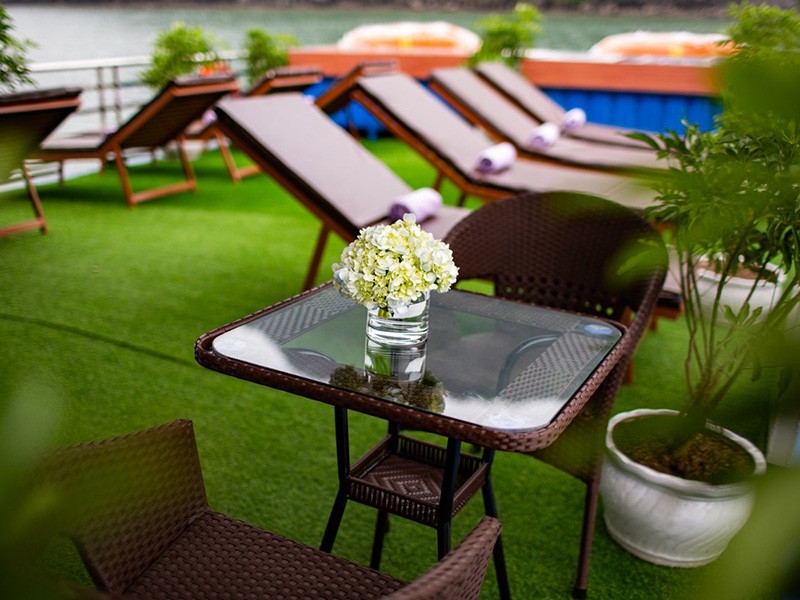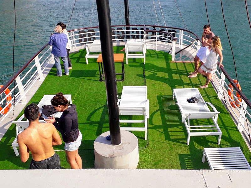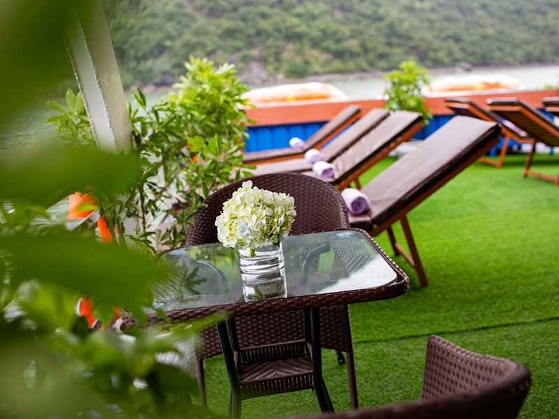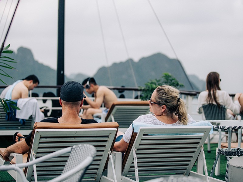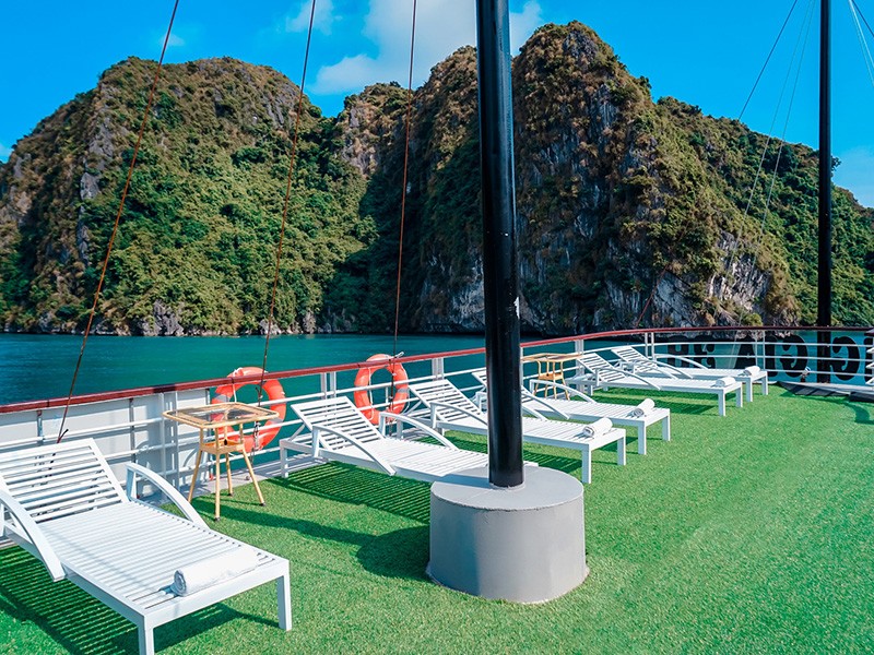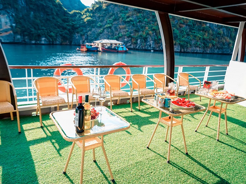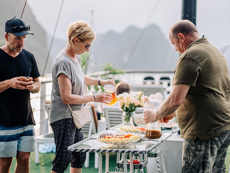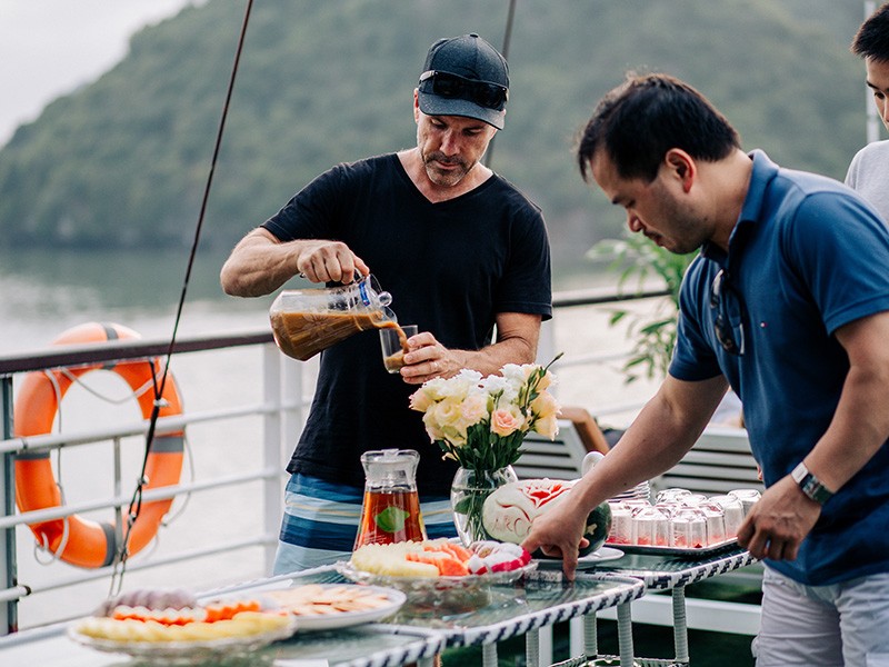 02:00pm: Enjoy tea break with cookies, tropical fruits, tea and coffee, while the boat cruising through hundreds islands in Lan Ha Bay.