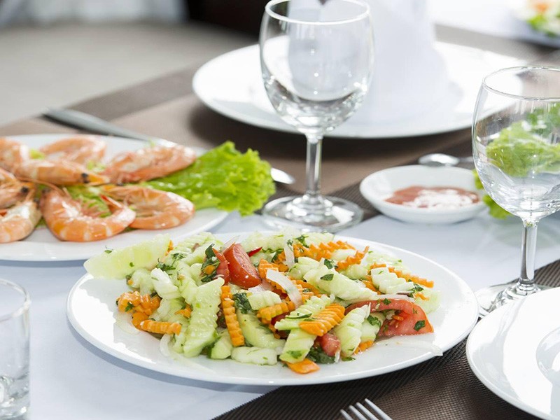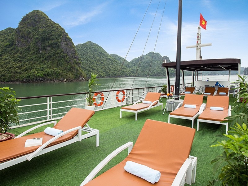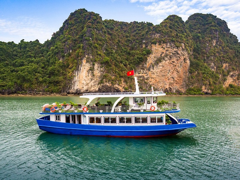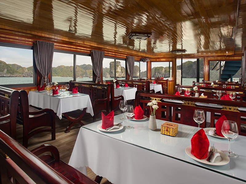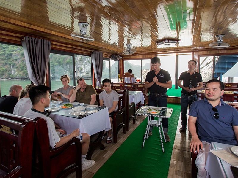 11:15am: Enjoy the typical local Lunch will be served with fresh seafood and Vietnamese cuisines while leisurely cruising to the faraway islands of Ha Long Bay.