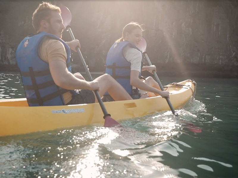 13:30 Visit Bai Tu Long Bay where you can go bamboo boating, kayaking at Ba Ham Lake, enclosed by vertical cliffs (if the weather permits).