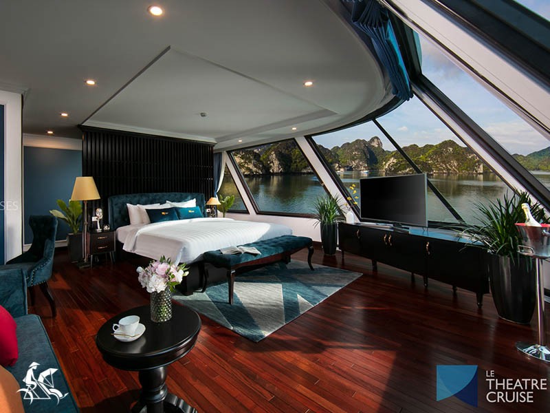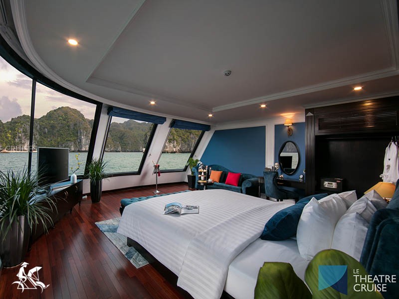Inaugurated in 2019, Le Theatre Cruise features state-of-the-art amenities and luxurious elegance crafted for an unforgettable cruising experience. Discover our specially crafted routes along Ha Long Bay - Lan Ha Bay as we take you to one of Vietnam’s most tranquil spots and little-known hidden gems away from the crowds. Our 21 ensuite cabins with breathtaking views of the ocean are equipped with the comforts of high-end facilities, privacy, and sophisticated urban décor. Modelled like a plush luxury theatre, Le Opera Restaurant serves international fine dining along with authentic Vietnamese cuisine for an inimitable culinary experience. With the sun, the ocean breeze, and views of the Ha Long Bay, our romantic sundeck and spacious rooftop bar area offer an ideal place to get away.