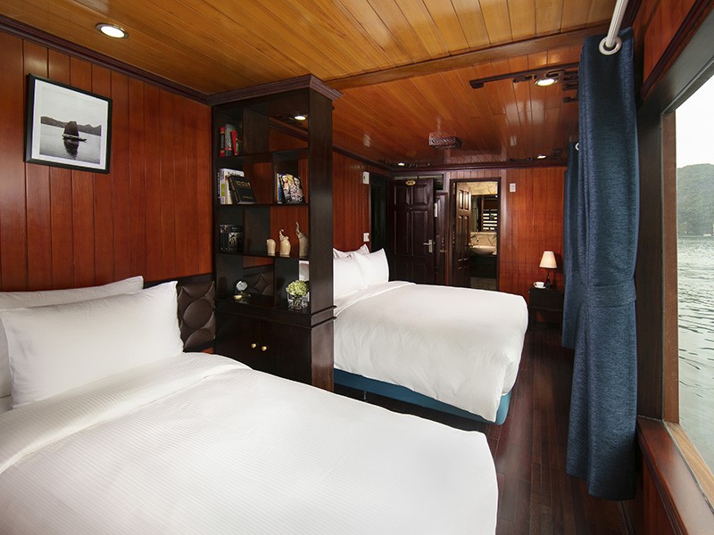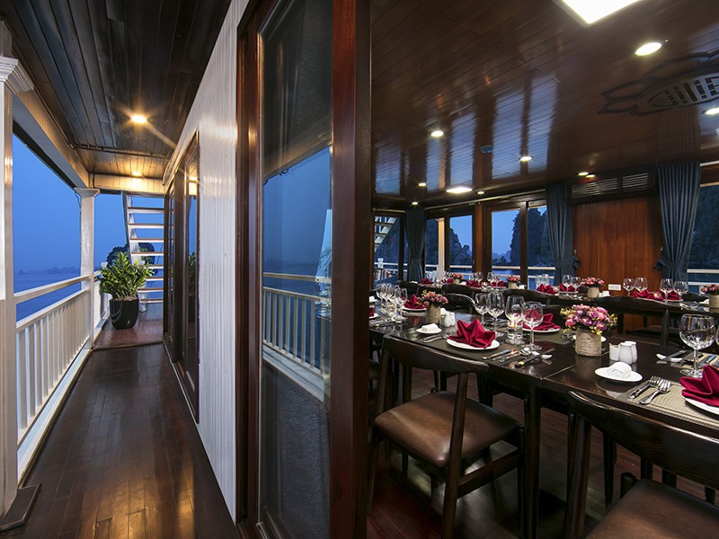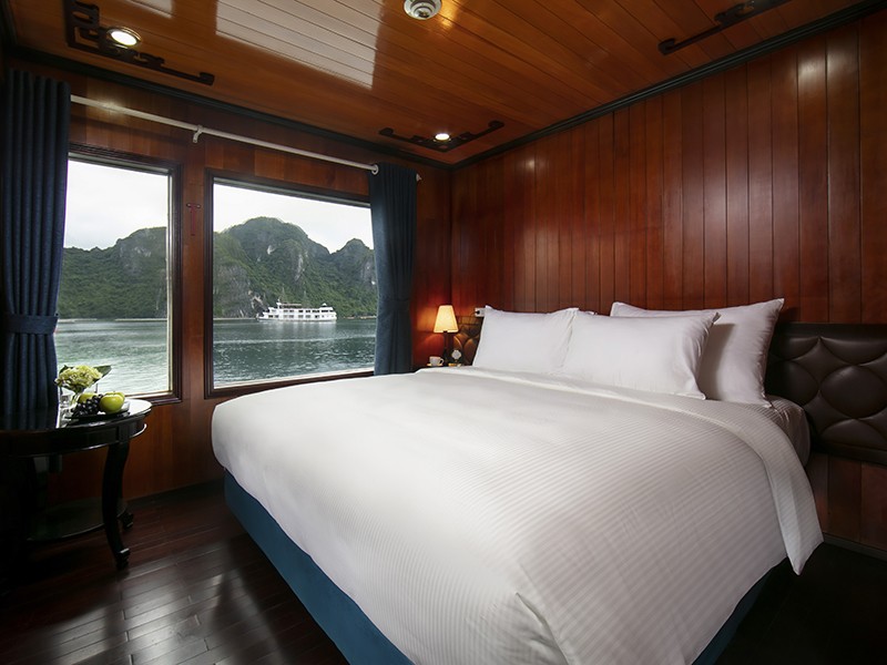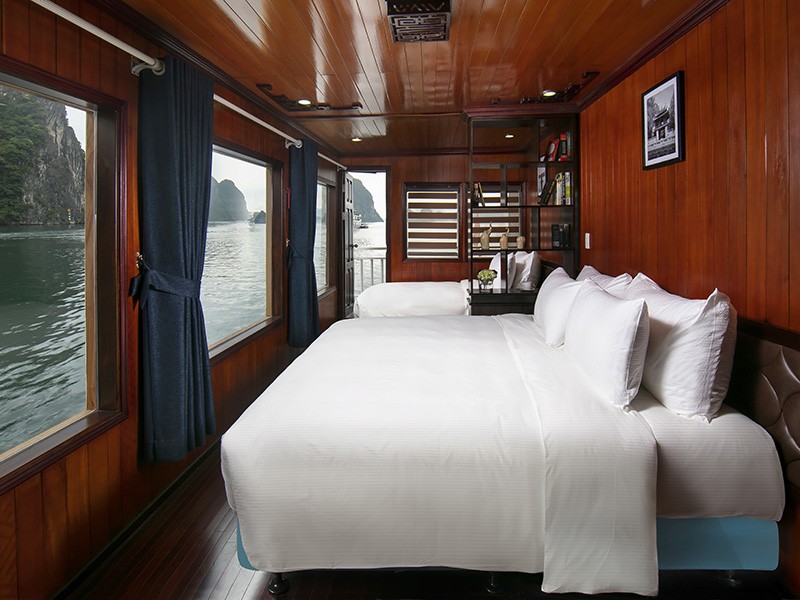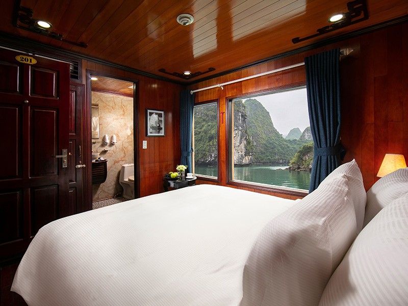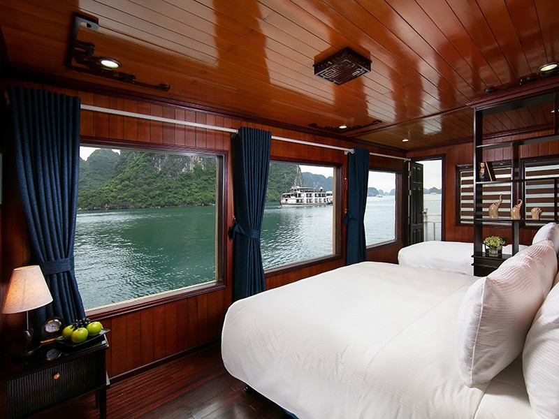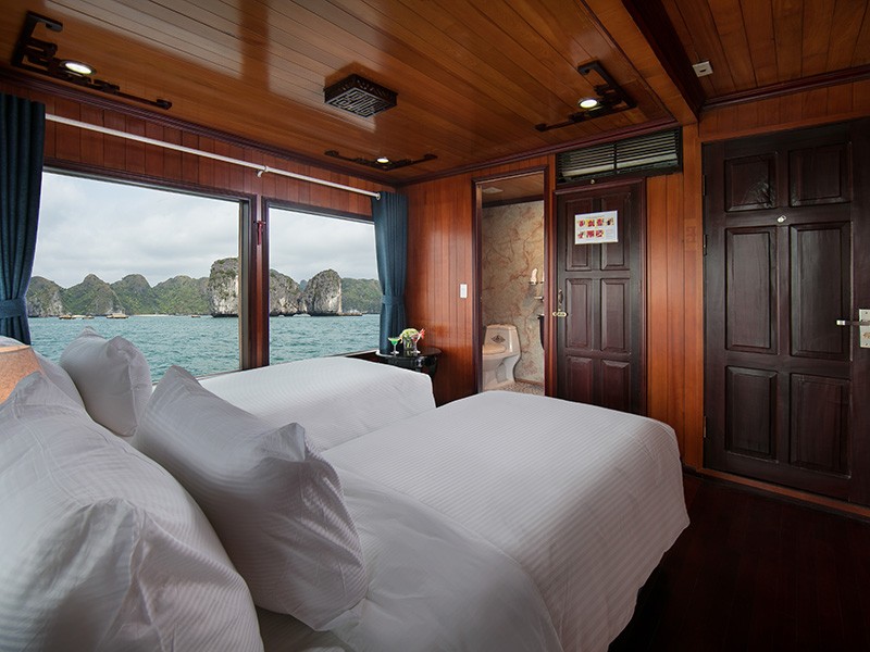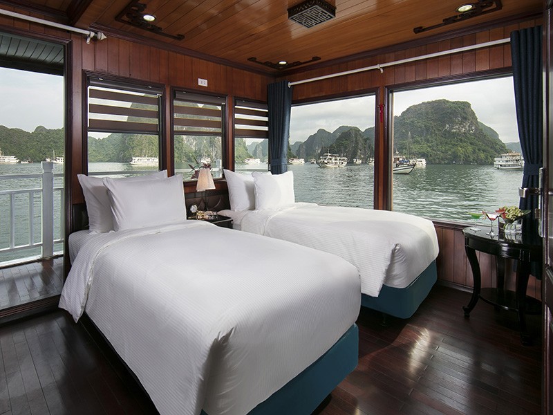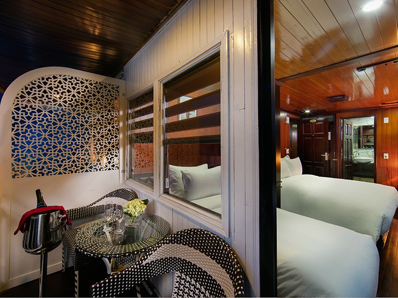 In general, the cruise features spacious, well-appointed cabins and suites with large en-suite bathrooms, large sun-deck with comfortable lounging furniture and elegant dining rooms and bars. We have designed and fitted our boats to international standards while maintaining traditional style, creating the perfect balance of modern comforts and nostalgic ambiance. All cabins are well-organized and sophisticatedly designed by equipping a plenty of modern facilities & technology which look like you are staying at 4-star luxury hotels on land rather than a cruise in the bay. Here is also our major difference from other cruise owners.