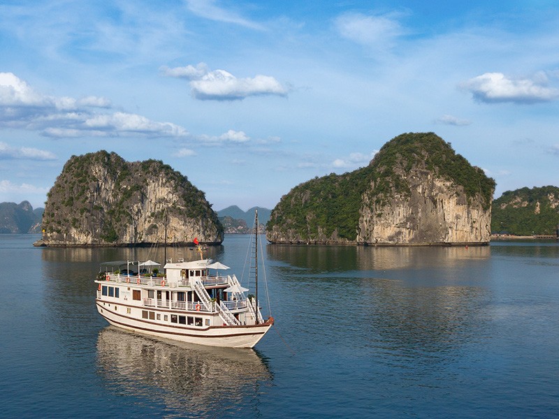 12:30 Arrive in Tuan Chau Marina Pier (Tuan Chau Island). Followed by activities such as: boarding Luxury Flamingo Cruise for departure, Welcome drink will be served and cruise briefing, safety instructions, check-in cabins by Cruise Manager