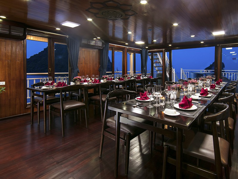 + Meals on board are fusion: Vietnamese, seafood & international. Guests should advise of any special food preferences, allergies or dietary requirements at least one (1) week prior to the cruise date.