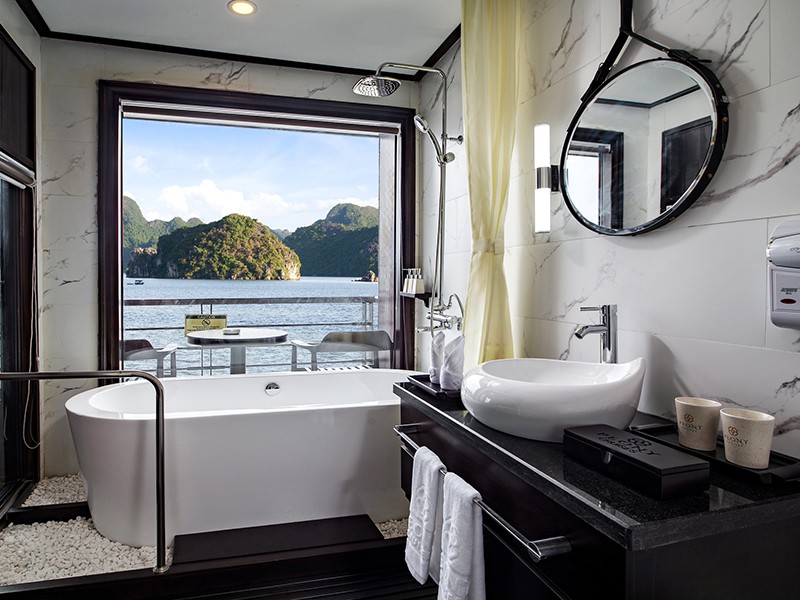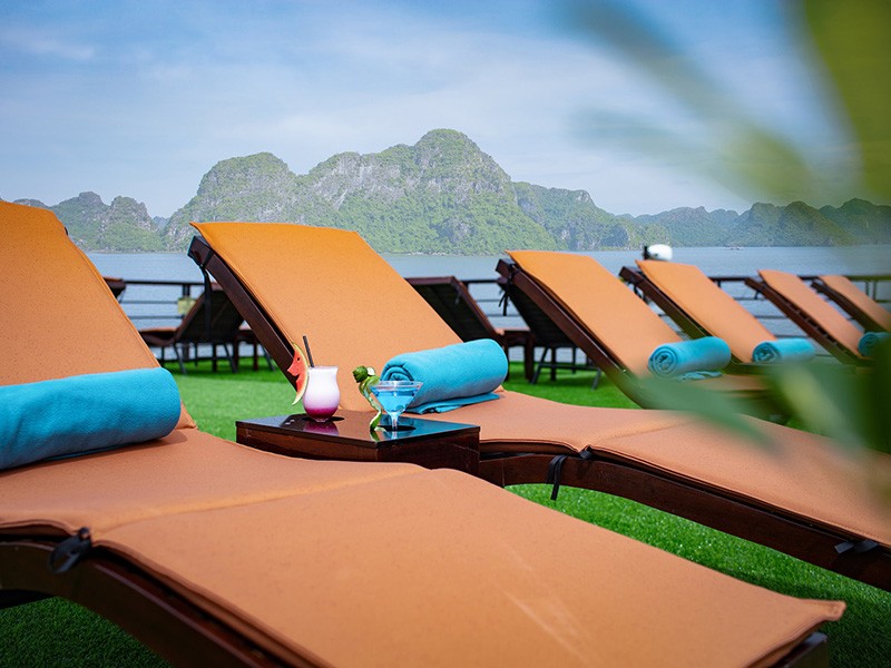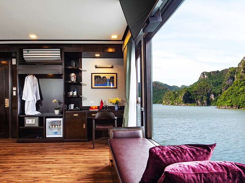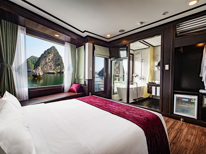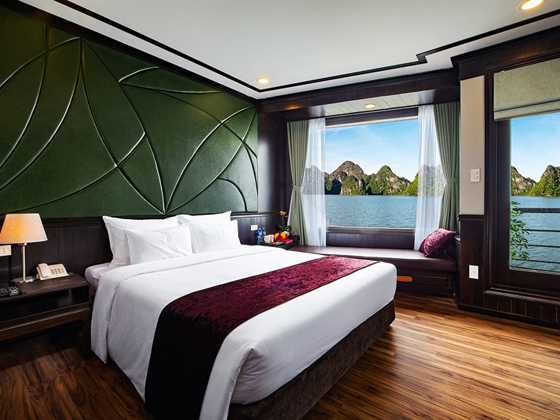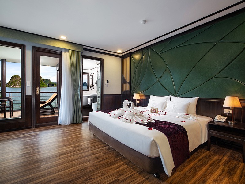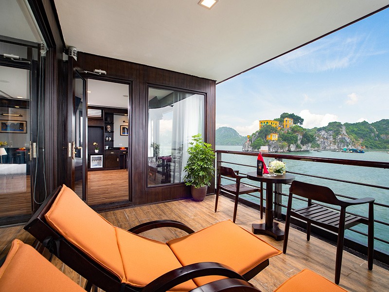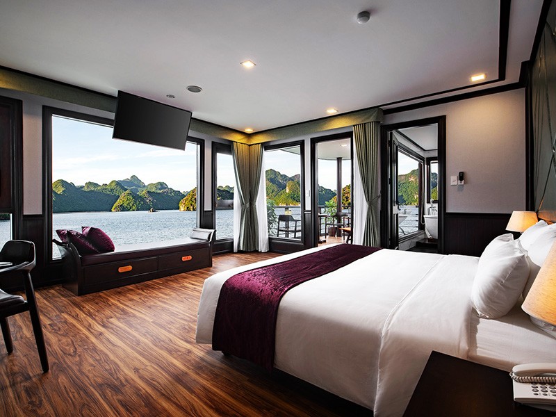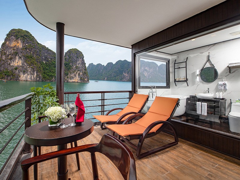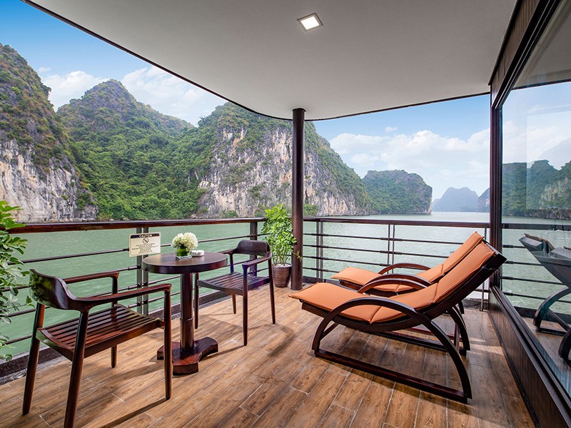 Luxurious and well-furnished cabins, all have private balcony and panoramic views from which you can savor yourself in the beauty of Halong Bay - Lan Ha Bay.