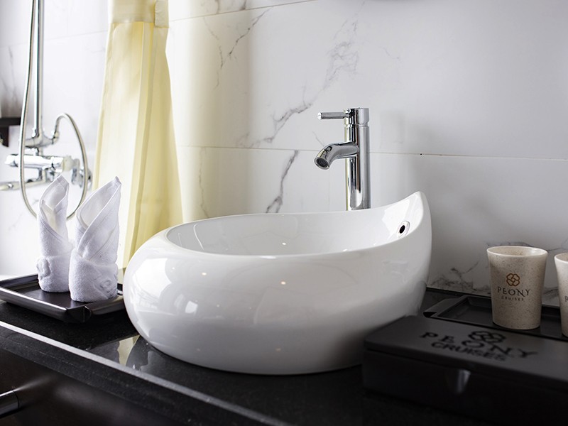 Like a striking large red peony in the sea, each boat of Peony Cruises shows its noble colour among others, giving each guest his or her own palace. The royal beauty represents the intricate design of the reception space, each cabin, the restaurant, the spa and the bar in a fine combination, thanks to talented designers from France, the country that is famous for imperial architecture and design. In addition, every item on board also meets strict Western standards for the highest quality.