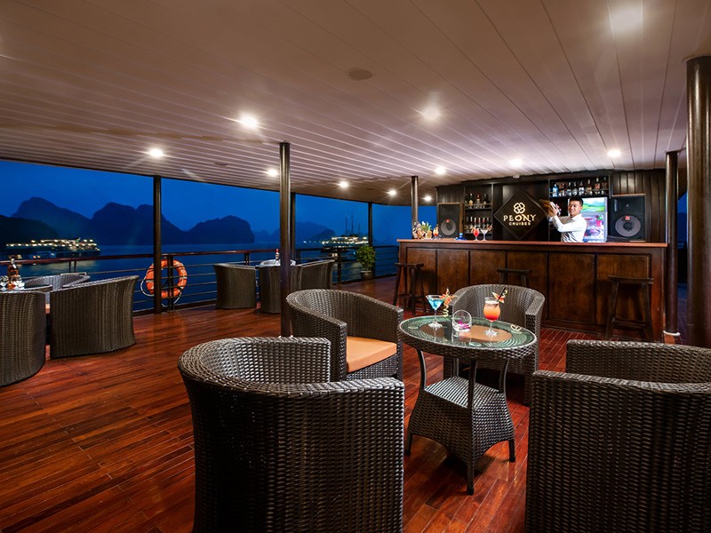 Peony Exclusive Suite Cabins are situated on the second floor which rooms are the most luxurious and utmost charming on Peony Cruises. Only 02 Peony Exclusive Suite Cabins are available on board which special cabins are the largest rooms as 45m2 including a private sun lounge and lounge chairs on the private balcony. The utmost view of Lan Ha Bay – Ha Long Bay and its own luxury cabins facilities are the most valuable marks of these special cabins. The plus point of cabins are handmade wooden decoration which curved by the skillful and professional Vietnamese artisans.