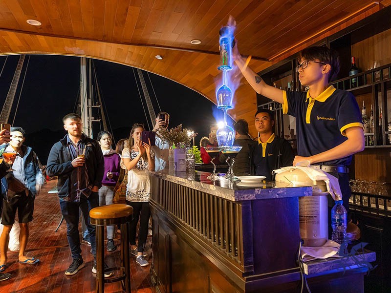 During the time well prepared Set menu lunch is served, Sena Cruise - Luxury Boutique Cruise slowly navigates emerald water and thousands of Karst Mountains towards the Harbor.