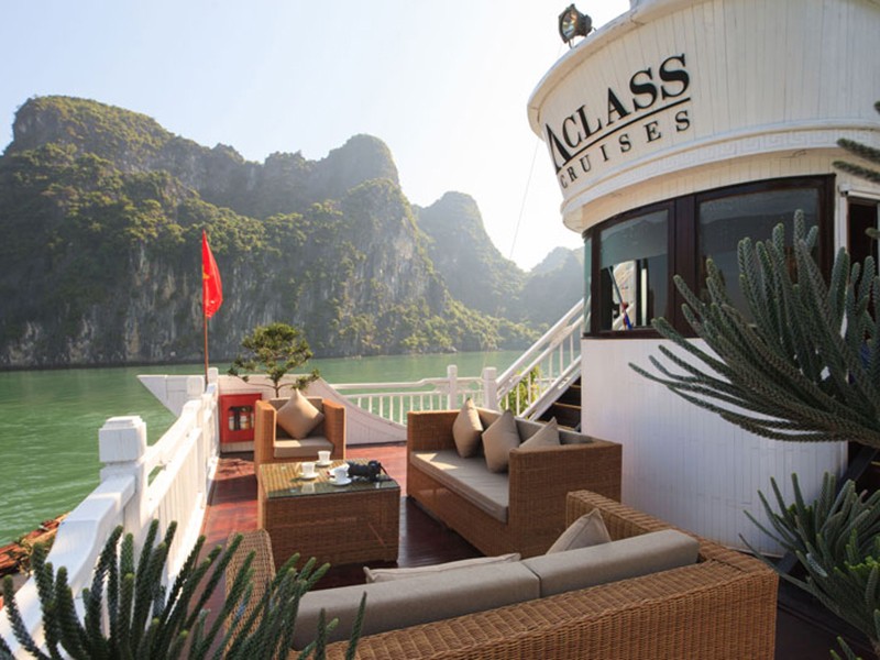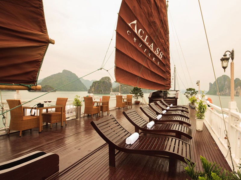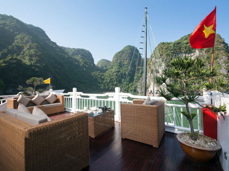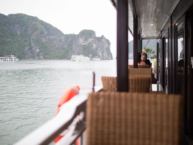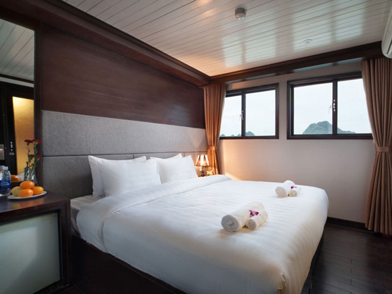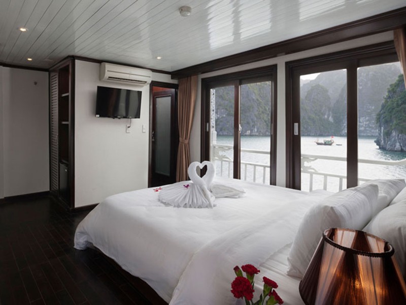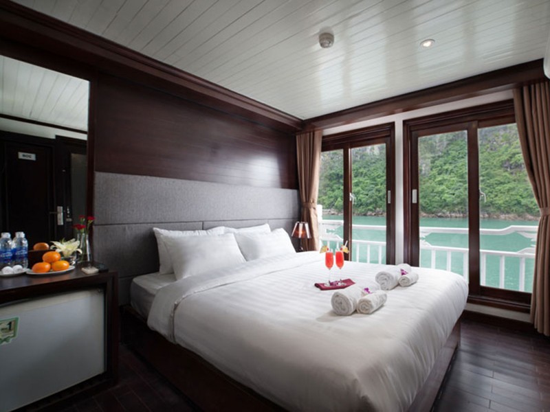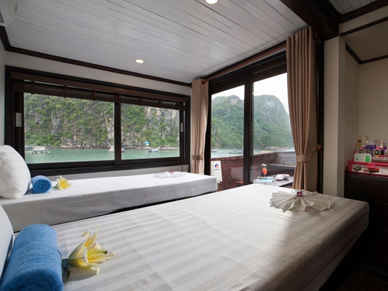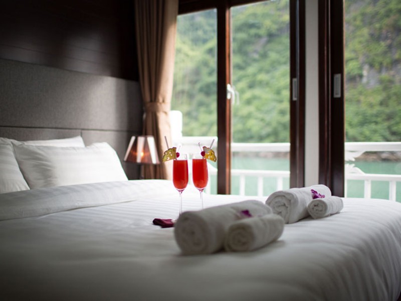 The premium cabins have the small private balcony, you can stand outside to get the fresh air of the world heritage site. Located on the more private second deck with full length of crystal - clear glass windows allowing our guests capture the largest view of the bay from your bed.