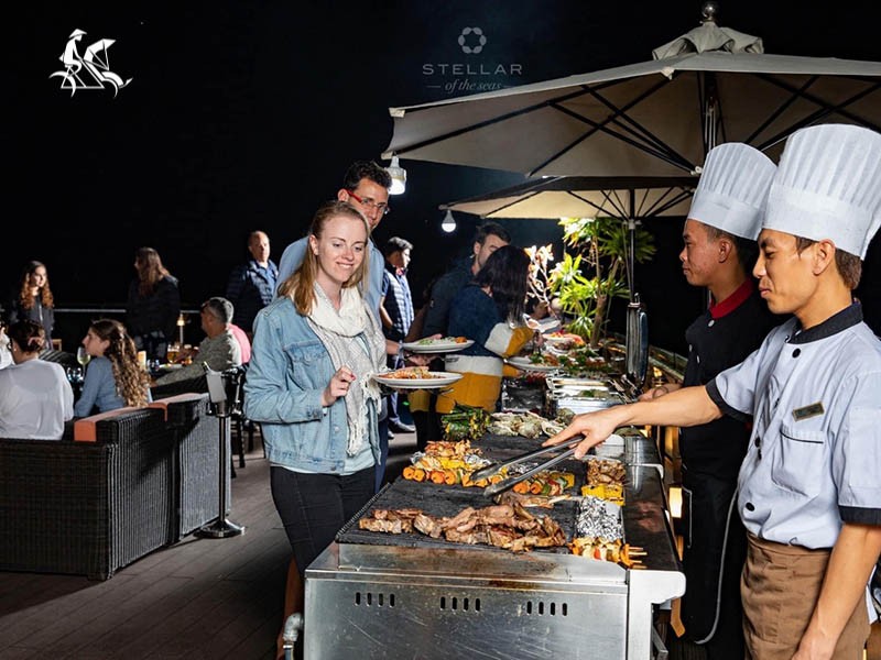 All meals on board: 01 set western lunch, 01 fine dining BBQ swimming pool dinner, 01 light breakfast and 01 Vietnamese menu brunch