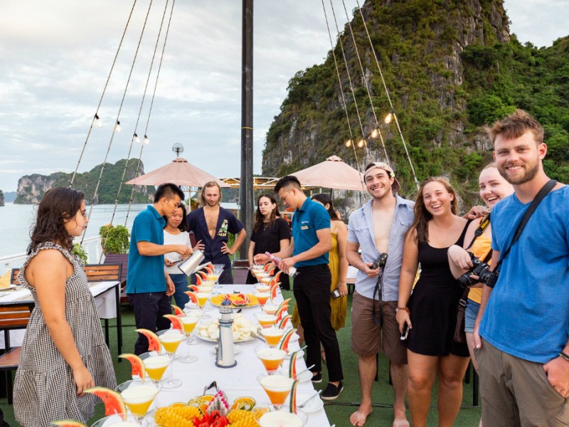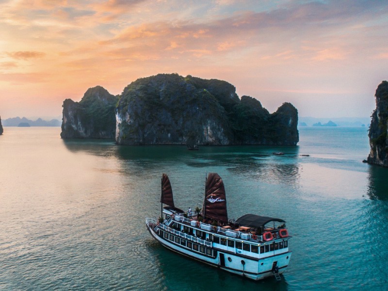 17.30: You are back to the boat to enjoy sunset tea while our cruise's sailing to Cong Do area