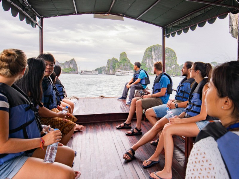 11.45: Back to the boat for a delicious hot lunch at noontime while the cruise moves to Vung Vieng fishing village