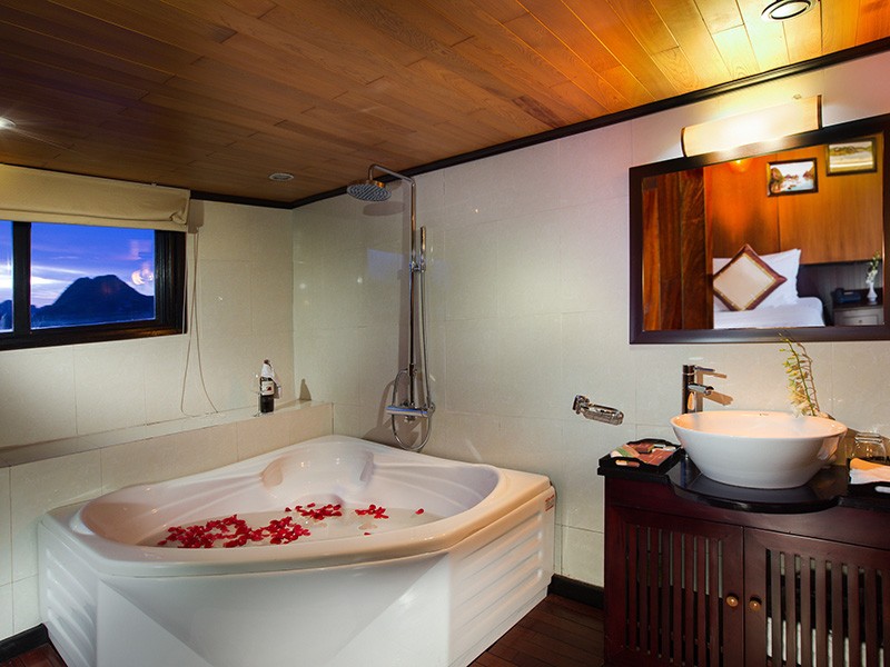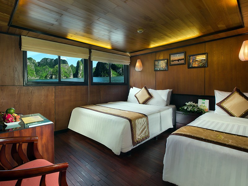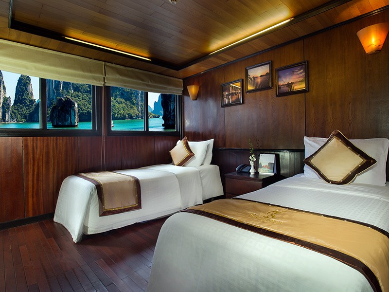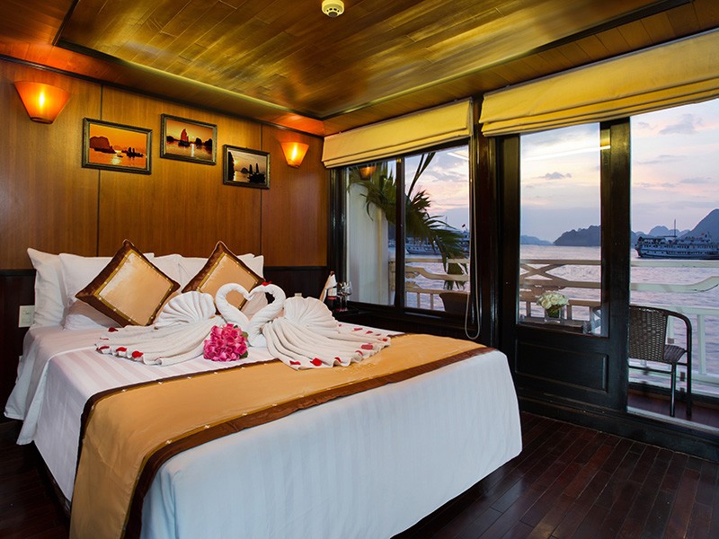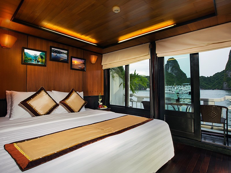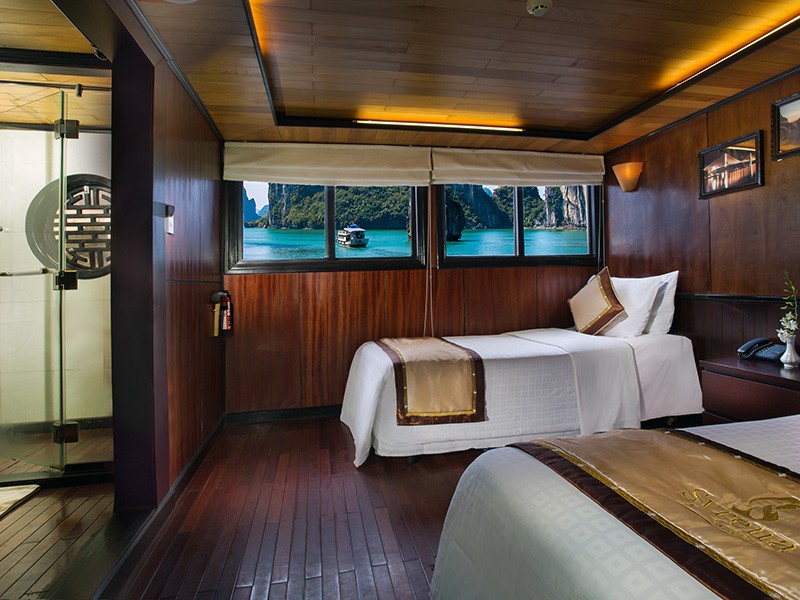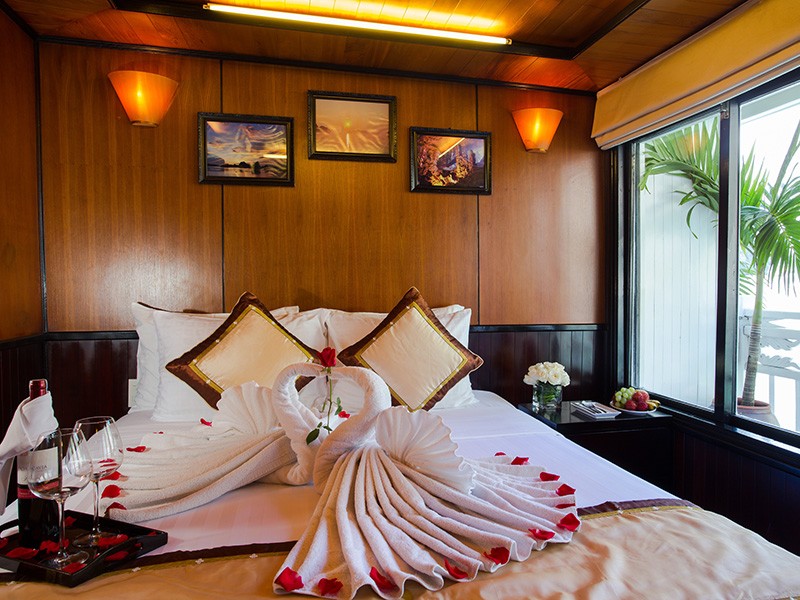 All our Deluxe Cabins and Suites are well appointed, with traditional Vietnamese hardwood creating lavish warmth. Light materials and clear windows ensure that each cabin is bright and airy. Hand-crafted furniture and delicate upholstery further enhance the warmth and light in each cabin.