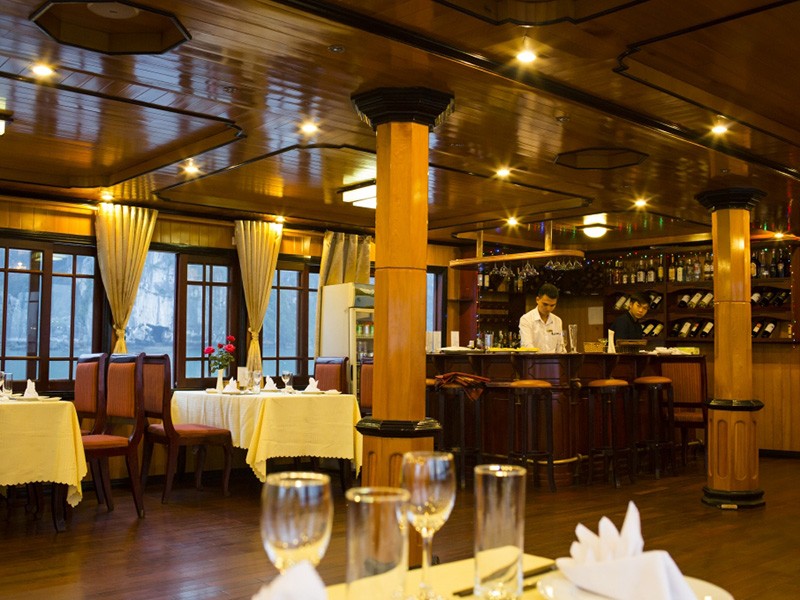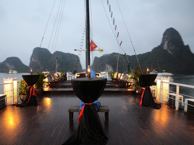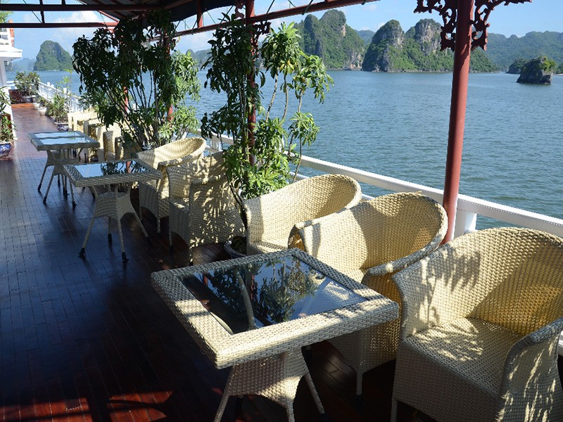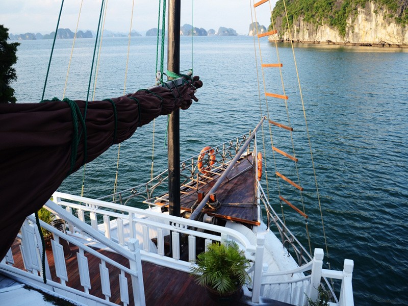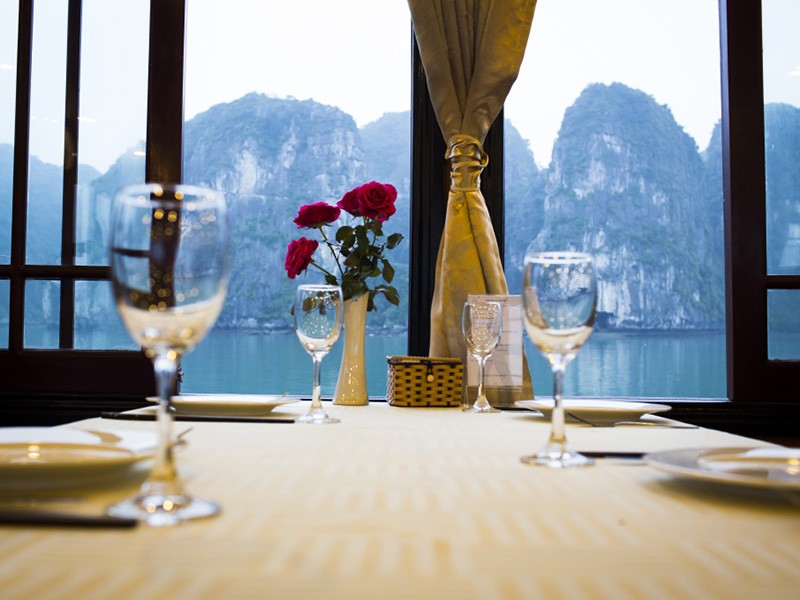 Have breakfast on board and enjoy the peaceful morning of Halong Bay. |