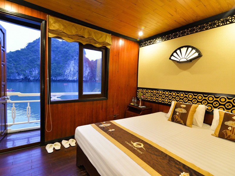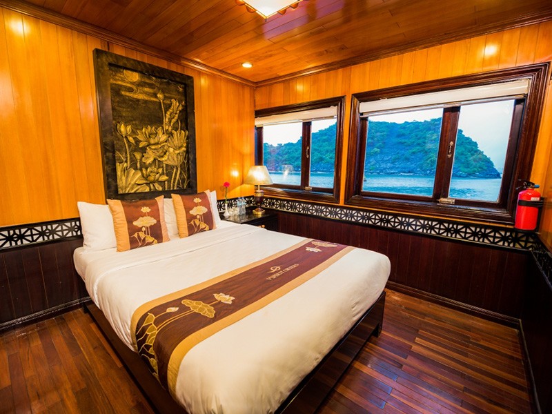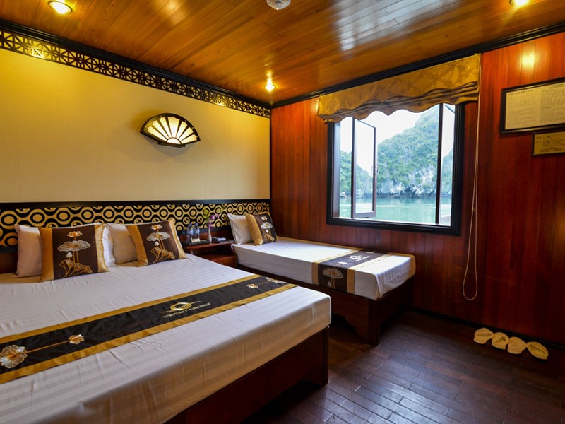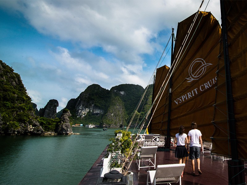 With this in mind, our two, newly built wooden junks are designed in the time-honored traditional style, but with contemporary, deluxe cabins and facilities, including sea-view windows in each cabin, private, modern bathrooms, and a comfortable sundeck bar. Our cooks will serve you the tastiest traditional Vietnamese foods, and our staff will help you learn about our current lives as well as our ancient history.