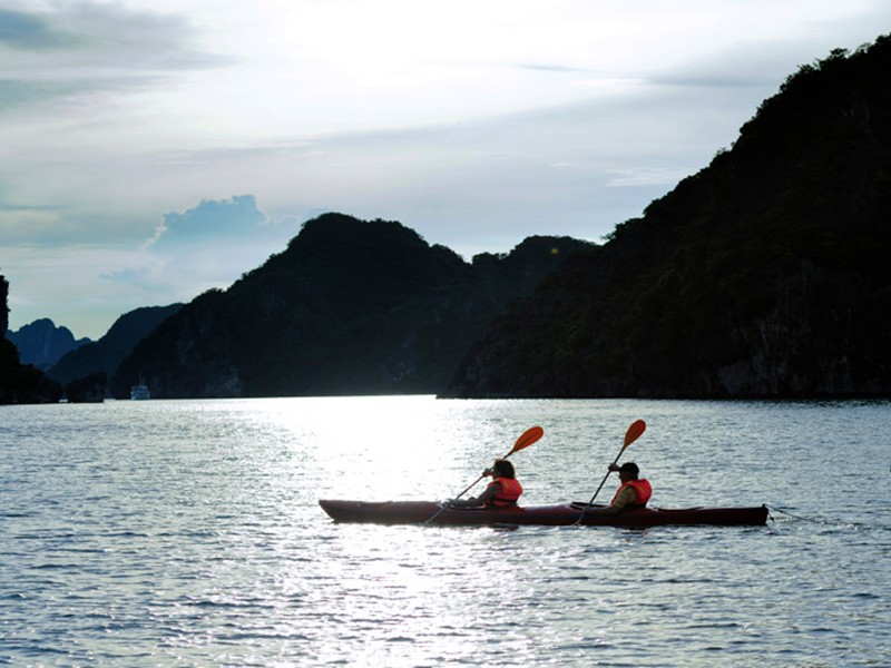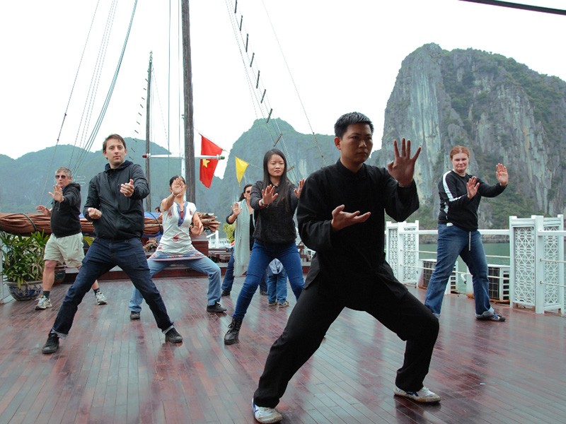 Cruising to Titov island. Go swimming and relaxing at the beach of Titov or climb up to the top of the island for a panorama view of Halong Bay. |