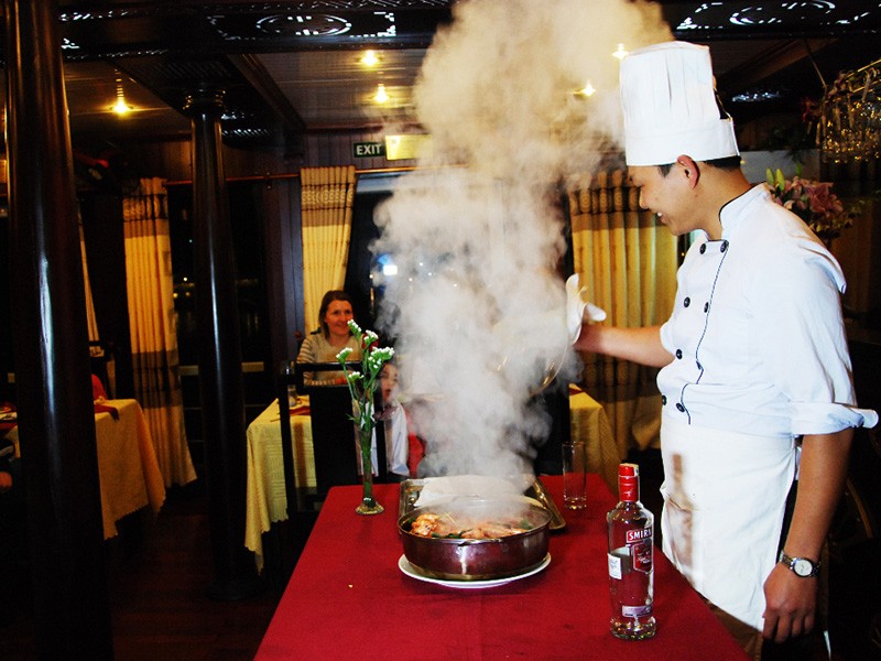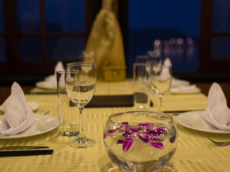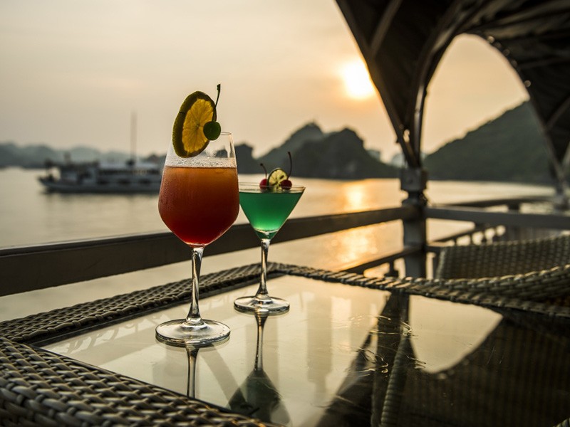 Savor a delectable lunch as V’Spirit Classic cruises among the limestone islands. |