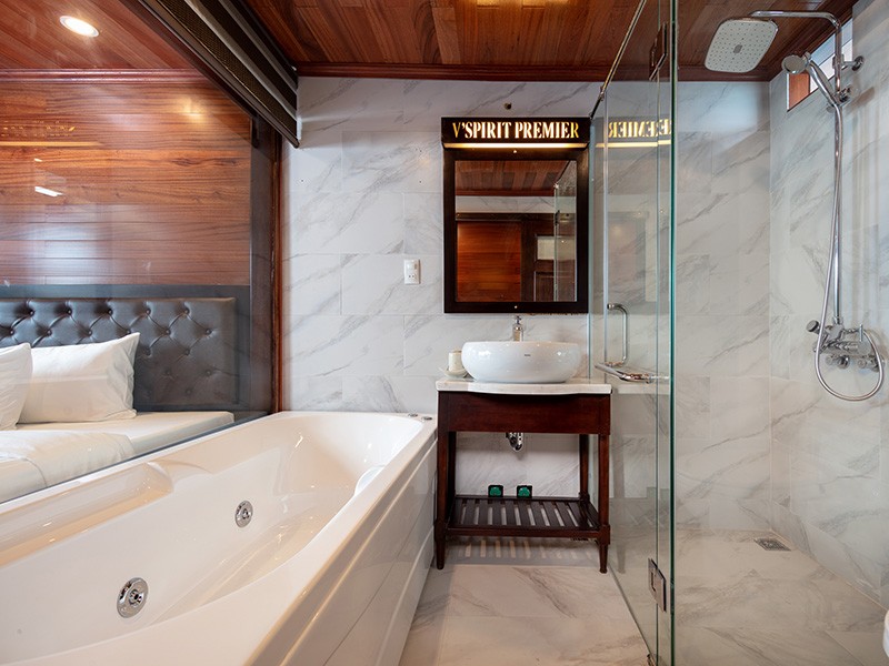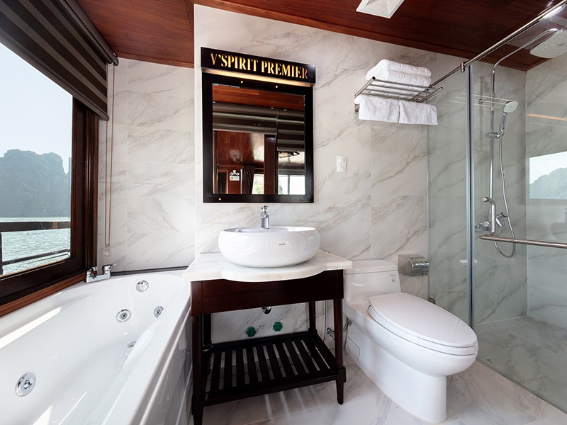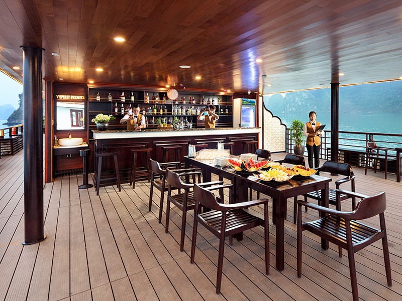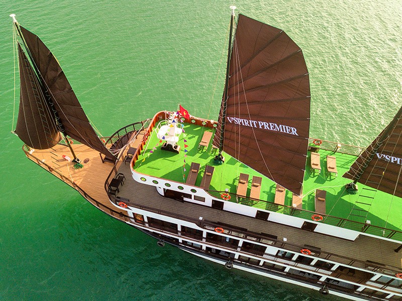 With an elegant design of 3 decks, the V'Spirit Premier features an original oriental tone, Vietnamese traditional decorative style together with the infinite care taken to use only the high quality materials in construction and decoration creating luxury appointments and five-star-class service.