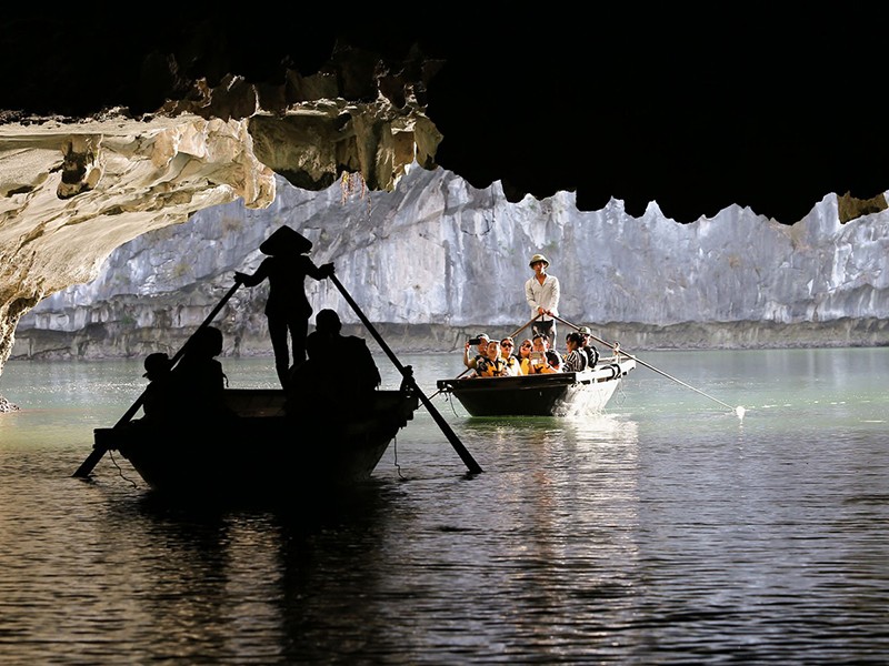 On sampan boats, some residents of the bay will show us their home by taking us to the Dark & Bright caves, two gorgeous caverns with a vast and enclosed lake on the other side. |